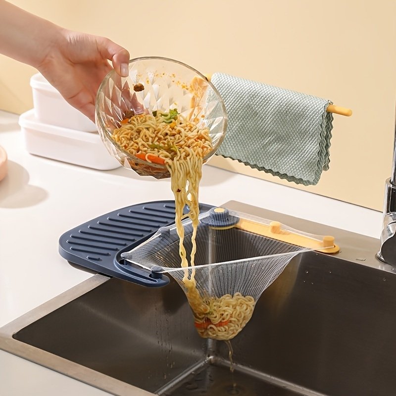 Home > 2pcs Kitchen Sink Drain Rack With Filter Multi-Functional Triangular Sink Rack Disposable Kitchen Waste Filter